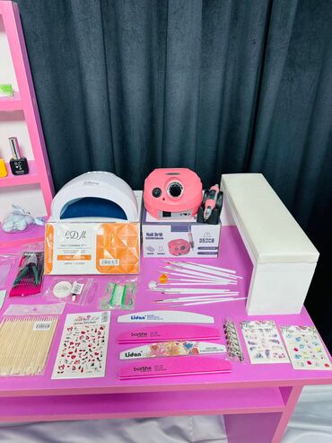 Manikür və dırnaq dizaynı üçün tam peşəkar set Komplektə daxildir: - Manikür/pedikir üçün elektrik frez aparatı (pink gövdə), müxtəlif frez başlıqları - UV/LED lampa - Tozudsoran fan (qutulu) - Ma...