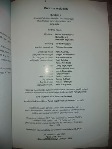 Rus dili dərslik 5 (2016) 4 AZN rus dili dərslik 6 (2017) 4 AZN rus