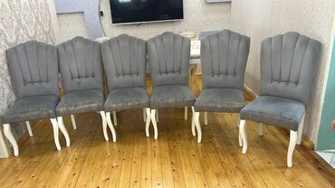 EndirimsizBoz rəngli 6 ədəd yumşaq yemək otağı kreslosu dəsti.