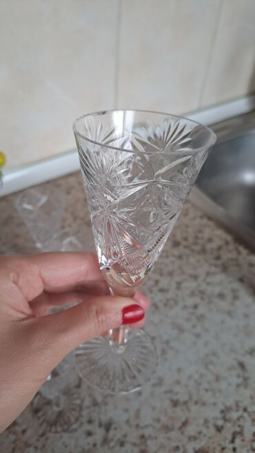 Kəsimli kristal qədəh dəsti - Sayı: 6 ədəd - Material: qalın, şəffaf kristal şüşə - Dizayn: əl işi tərzində dərin kəsim naxışlar – romb, ulduz və xətli ornamentlər - Forma: qısa saplı, geniş kasa ...