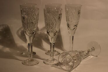 Kəsik naxışlı şüşə şampan qədəhləri dəsti