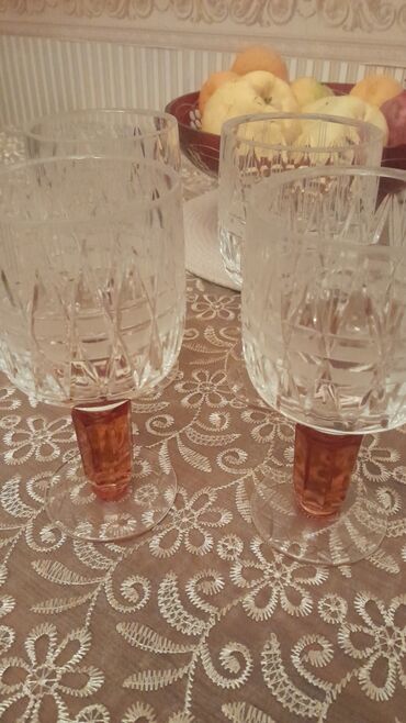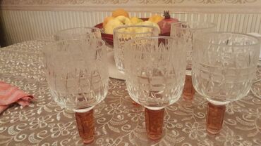 Rəngli kəsimli şərab qədəhləri dəsti - 6 ədəd qədəh: qırmızı, yaşıl, göy, narıncı, sarı və bənövşəyi rənglər - Şüşə material, əl işi üslubunda dərin kəsim naxışları (klassik kristal motivləri) - H...
