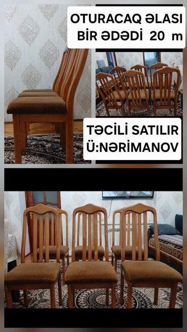 Yemək otağı üçün 6 ədəd taxta stul dəsti.