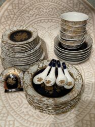 1 ədəd sup qabı; 1 ədəd iri oval boşqab; 1 ədəd orta və 1 ədəd kiçik boşqab; 2 ədəd iri dərin plov qabı; 1 ədəd iri plov boşqabı; 11 ədəd iri boşqab; 10 ədəd orta boşqab; 4 ədəd kiçik boşqab; 12 əd...