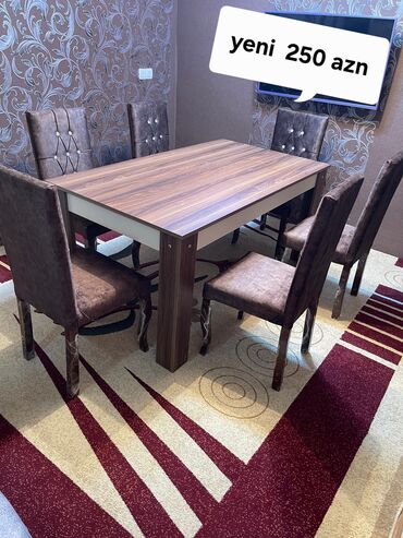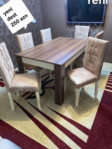Qonaq otağı üçün, Yeni, Açılmayan, Dördbucaq masa, 6 stul