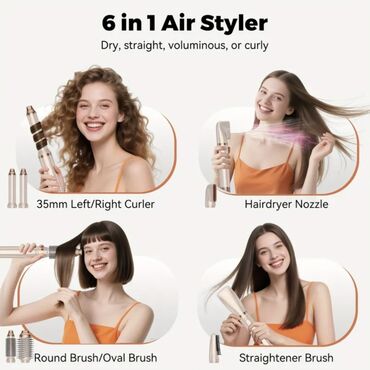 6 fərqli başlıq (fen, burucu, oval fırça, dairəvi fırça, düzləşdirici və s.)