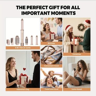 hot air styler, 6 in 1 fen, saç feni, saç buran, saç düzləşdirici, ionlu fen, saç üçün fen, burucu fen, styler, saç aləti, fen daraq, hədiyyə üçün fen