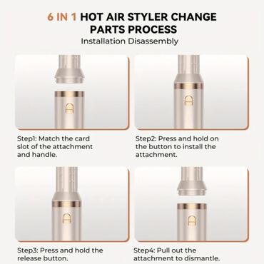 6-si 1-də Hot Air Styler – saç üçün çoxfunksiyalı cihaz. Fen, burucu, düzləşdirici və həcmləndirici funksiyaları bir arada. Evdə salon effekti yaradır.