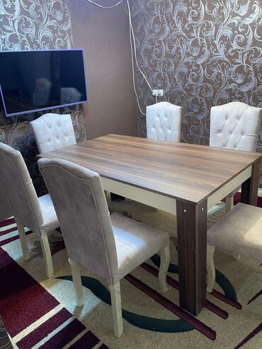 - Komplekt: 6 ədəd yumşaq oturacaqlı stul + düzbucaqlı masa.