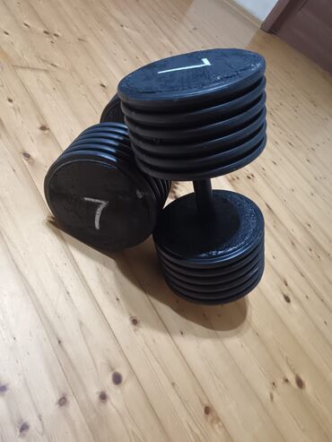 7kglig gantel satilir,yenidi teze sifaris edilib,axir geldi deye satilir.Ela vezyetdedi,tutacaglari demirdi,galan hissesi plastik.