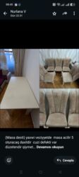 (Masa desti) yaxwi veziyyetde 6 oturacaq daxildir oturacaqlarin bezisinin ayaqlari berkidilmelidir ..bawka prablem yoxdur fabrik malidir qiymet dest 280 azn unvan masazir nurlana