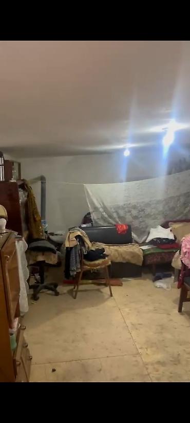 - Plan: girişdən sonra iri zal/otaq; pəncərə və qapı açıqları var. Döşəmə taxta/OSB tipli lövhələrlə örtülüb.