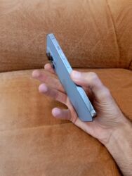 Apple iPhone – mavi rəngdə, üçlü arxa kamera moduluna malik model. Xüsusiyyətlər: - Rəng: açıq mavi (mat arxa səth, Apple loqosu). - Korpus: düz kənarlı dizayn, metal çərçivə görünüşü. - Kamera si...