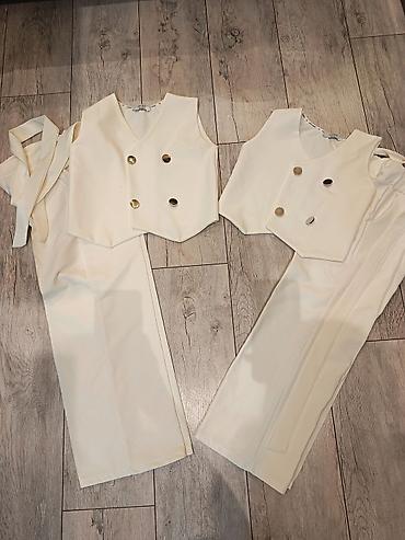 Uşaq kostyum dəsti – 2 parça - Marka/etiket: XMYN - Ölçü: 130 (təqribi 7–8 yaş üçün) - Rəng: Açıq pudra/solğun çəhrayı - Dəst: Qolsuz jilet + şalvar Jilet: - Ön hissədə düyməli bağlanma (3 ədəd e...