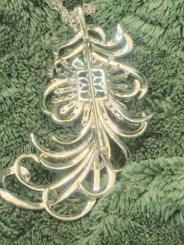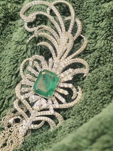 Ünvandan götürməA KLASS Art deco sancaq broş kulon boyunbağ "Zümrüd Lələyi" 925 prob gümüş zümrüd ve təbii dag bülluru qaslarla bəzədilib А КЛАСС!!! Арт деко 925 пробы серебро "Изумрудгая Перо" изумруд и натуральный горный хрусталь