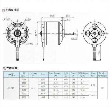 - 2450KV + 6×3 pərvanə: 25.2 A, 815 g, 280 W, 2.9 g/W