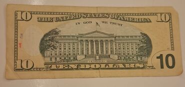 - Arxa tərəf: ABŞ Xəzinədarlıq binasının təsviri, “In God We Trust” şüarı