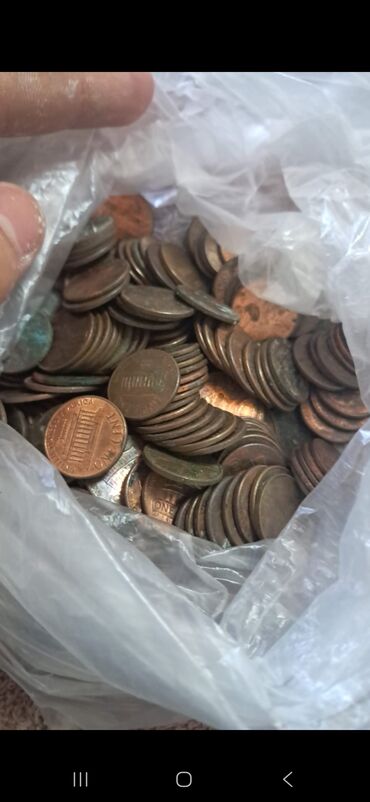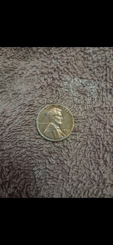 - Penny (1¢) sikkələri – çoxlu “Lincoln” mis-misörtük nümunələri; şəkillərdə həm “Lincoln Memorial” arxa dizaynlı sentlər, həm də tarixləri 1950-ci illərdən başlayaraq sonrakı illərə qədər dəyişən sikkələr görünür. Yaxından şəkli verilən nümunələrdən biri 1959 tarixlidir.