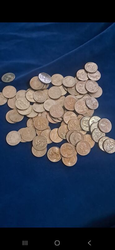 - Sikkələr toplu şəkildə təqdim olunub; şəkillərdə həm süfrə üzərində, həm də paket daxilində olan qarışıq lot əks olunub.