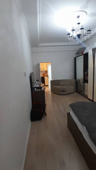 Geniş və işıqlı mənzil interyeri - Uzun, geniş dəhliz: LED tavan işıqları, dekorativ naxışlı divar kağızları, laminat döşəmə. Elektrik sayğacı və paylayıcı qutu dəhlizdə yerləşir. - Otaq: Böyük pə...