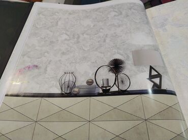 Dekorativ divar kağızı – mərmərvari fırça izləri effektli - Dizayn: Abstrakt, dalğavari-fırça izləri ilə mərmər teksturasını xatırladan naxış. Açıq boz/gümüşü tonlar, işığa düşdükdə zərif parıltı ...