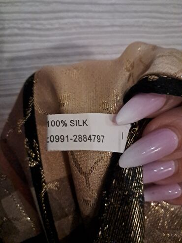 Zərif dizaynı və isti neytral rəng palitrası istənilən geyimlə asan uyğunlaşır. Etiket üzərində “100% SILK” qeyd olunub.