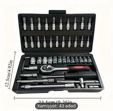 46 parçalı universal başlıq və qollu açar dəsti - Avtomobil təmiri, məişət montajı və mexaniki işlər üçün geniş tətbiq. - 1/4" və 1/2" kvadrat uclu qollu açarlar (tərs-sürüş/ratchet mexanizmi, rah...