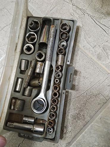 - Mexaniki işlər üçün komplekt: 1/4" və 3/8" kvadrat ucluqlu daraqlı qola (ratsket) uyğun müxtəlif ölçülü altıbucaqlı nasadkalar