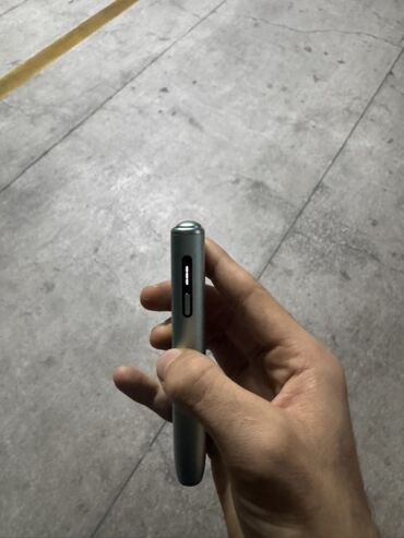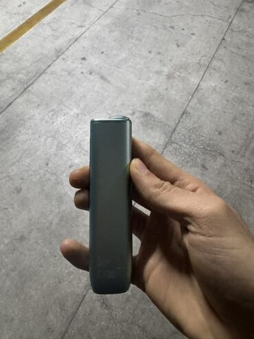 Elektron siqaret üçün portativ şarj qurğusu/keş. - Korpus: kompaktdır, oval formalı, tutması rahat. - Rəng: tünd boz (mavi-boz ton). - Yan hissədə parlaq metalik panel, üst tərəfdə düymə və göst...