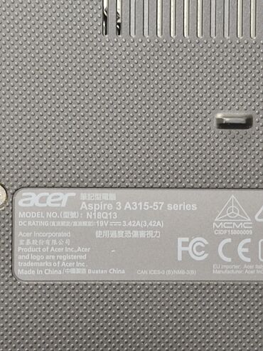 - Digər: geniş touchpad, HD veb-kamera, mikrofon, Aspire 3 informasiya stikerləri