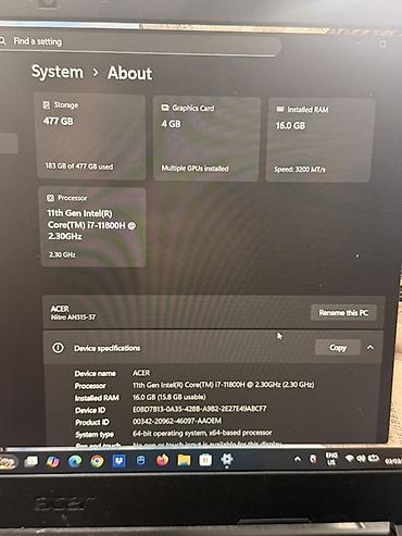 - Qrafika: NVIDIA GeForce RTX (4 GB VRAM) — ayrıca diskret GPU, həmçinin inteqrə olunmuş qrafika mövcuddur