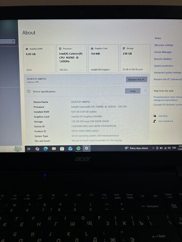 Acer aspire lite AL12-31P-39KN CPU: Intel® Celeron N4500 RAM: 8 GB DDR4 SSD: 512 GB M.2 NVMe™ PCIe® GFX: Intel® UHD Graphics LCD: 15" FHD (1920 x 1080) IPS