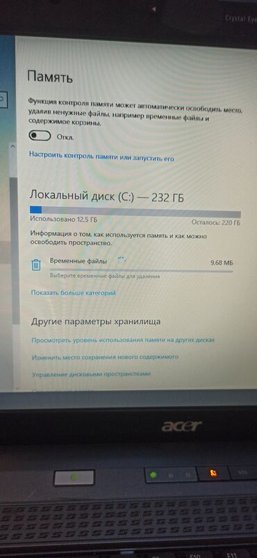 - Yaddaş (disk): 232 GB (C:), Windows-da göstərilir