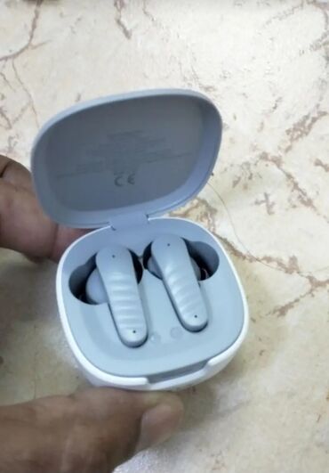- Qara rəngli modellə qutuda təsvir, real fotolarda boz-ağ rəngli şarj qutusu və qulaqlıqlar