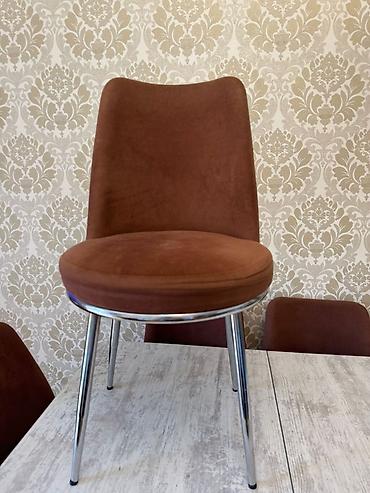 - Dəst: qəhvəyi rəngdə yumşaq oturacaqlı, arxalı stullar (xrom ayaqlı). Şəkillərdə 4 stul görünür.