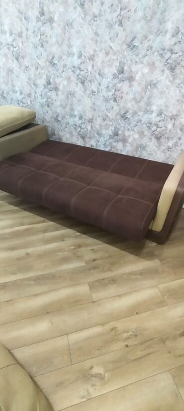 Divan – açılan, bazalı, parça üzlü - Ümumi ölçü: 2 metr (şəkildə qeyd edilib) - Mexanizm: açılır, yataq funksiyalı - Daxili baza: yorğan-döşək üçün saxlama bölməsi - Material: parça (müxtəlif rəng...