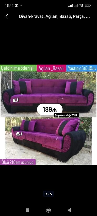 Künc divan – sifarişlə hazırlanır. - Ölçü: 3/2 - Rəng seçimi mövcuddur - Açılan, bazalı model - Yumşaq oturacaq və bel hissəsi, dekorativ tikişlər - Taxta dekorlu yan hissələr və dayanıqlı aya...