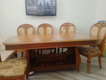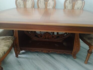 Dəbdəbəli interyerlərə, xüsusi günlər və gündəlik istifadəyə uyğun, zərif klassik üslublu genişlənə bilən yemək masası.