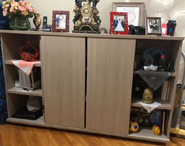 - Yanlar: hər iki tərəfdə açıq rəf blokları – dekor, kitab, elektronik və qab-qacaq üçün