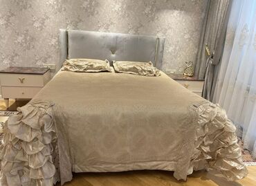 Zərif dizaynlı krem rəngli yataq dəsti bir defe salinib. yenidir - Komplekt: üzlüklü yorğan/örtük, 2 ədəd dekorativ yastıq, 2 ədəd yastıq üzü (şəkillərdə görsənənlər) - Material: atlas və saten to...