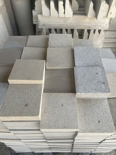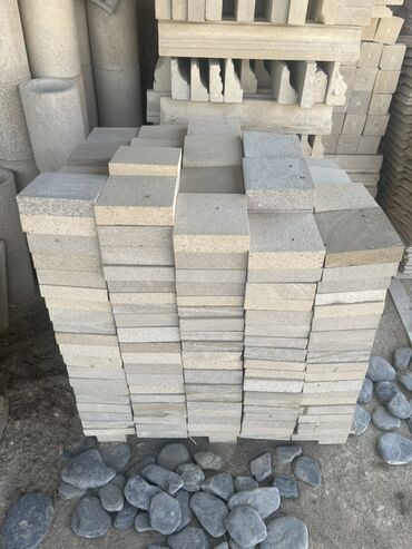 Dekorativ fasad/hasar üçün daş fakturalı üzlük plitələri - Material: beton əsaslı dekorativ plitə - Faktura: kərpic-daş teksturası, rellefli səth - Rəng palitrası: bej və boz tonların qarışığı (om...
