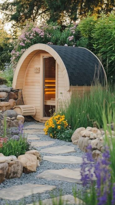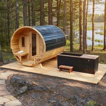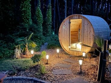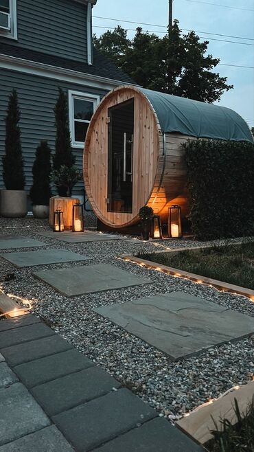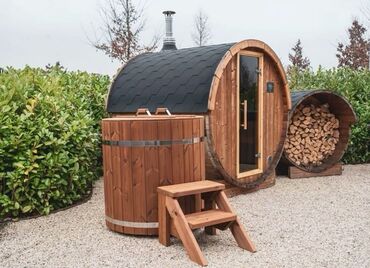 Bağınızda spa mühiti yaratmaq üçün təbii ağacın isti ab-havasını və klassik sauna təcrübəsini birləşdirən portativ açıq hava saunası.