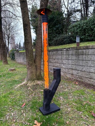 Açıq hava üçün şaquli alov effekti verən bioyanacaqla işləyən isidici (Fire Tornado/Alov Borusu tipli).