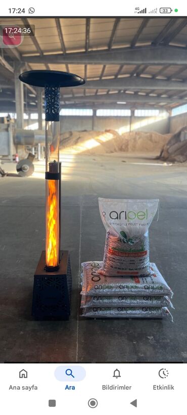 - Yanacaq növü: pelet/biokütlə (şəkildə “ariPel” peletləri göstərilib).