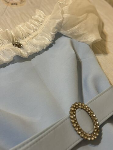 - Bəzəklər: Yaxada kiçik daşlı broş detali; beldə eyni parçadan kəmər və kəmərdə oval formalı daşlı tokalı bəzək.