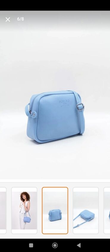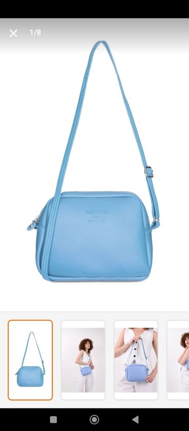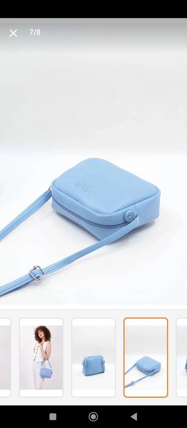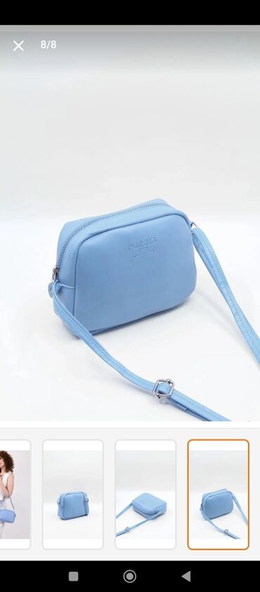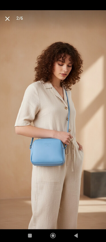 Zərif açıq-mavi rəngli qadın əl çantası - Struktur: sərt formalı korpus, iki ədəd möhkəm üst qulpu və çıxarıla bilən/uzadıla bilən çiyin qayışı - Bölmələr: iki yan şaquli fermuarlı əsas bölmə, ort...