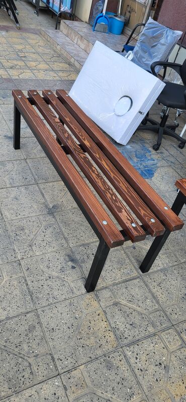 - Dizayn: Minimal, aralı taxtalı oturacaq səthi ilə klassik park skamya stili. Arxa dayağı yoxdur – hər iki tərəfdən oturmaq rahatdır.