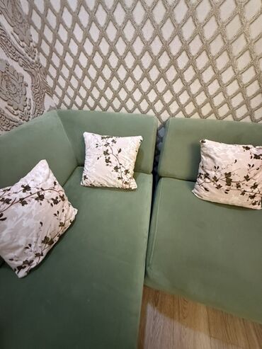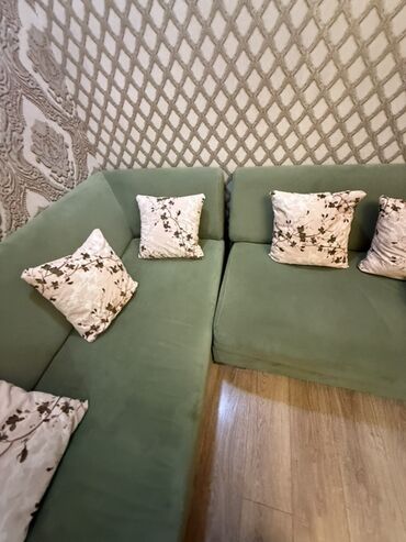 - Daxildir: 5 ədəd dekorativ yastıq (açıq krem fonlu, qara-yaşıl çiçək naxışlı)