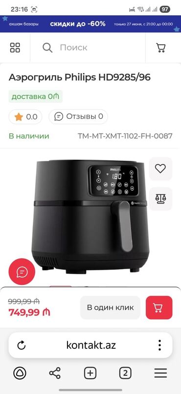 Fritoz Philips, Yağsız l, Pulsuz çatdırılma, Ödənişli çatdırılma, Rayonlara çatdırılma