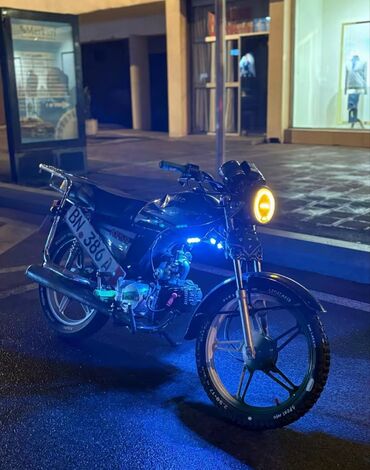Motosiklet – şəhər içi gediş-gəliş və gündəlik istifadə üçün praktik model. Xüsusiyyətlər: - Yanacaqla işləyən, 1 silindrli mühərrik - Ön və arxa amortizatorlar - Mexaniki ötürmə (ayaqla dəyişmə) ...